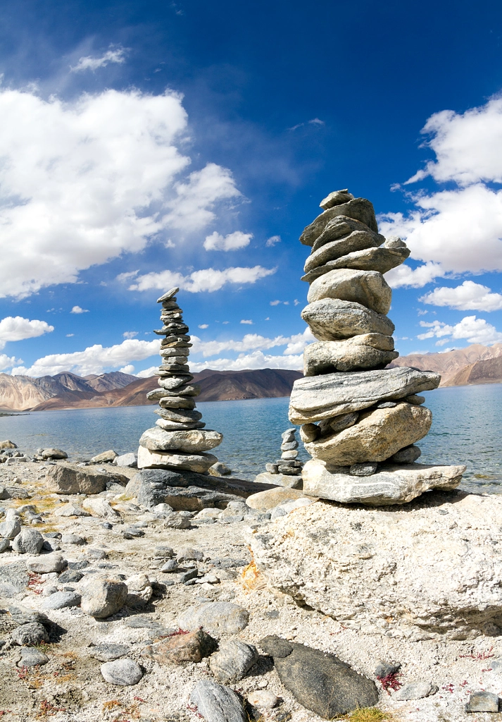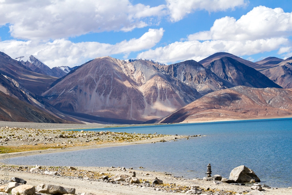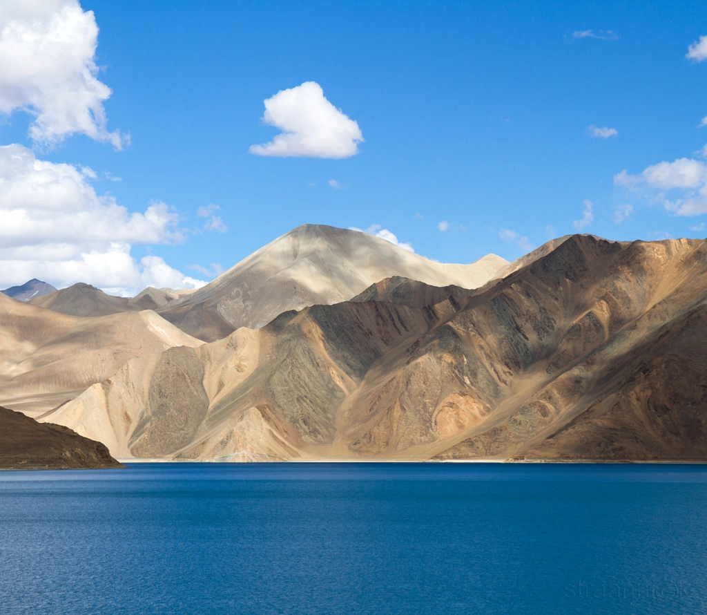PangongTso - бессточное озеро в Гималаях расположенное на высоте около 4350 метров над уровнем моря. Оно 134 км в длину и простирается от Индии до Китая. 60 % озера — в Китае. В самой широкой точке ширина 5 км. Зимой озеро полностью замерзает, несмотря на солёную воду.