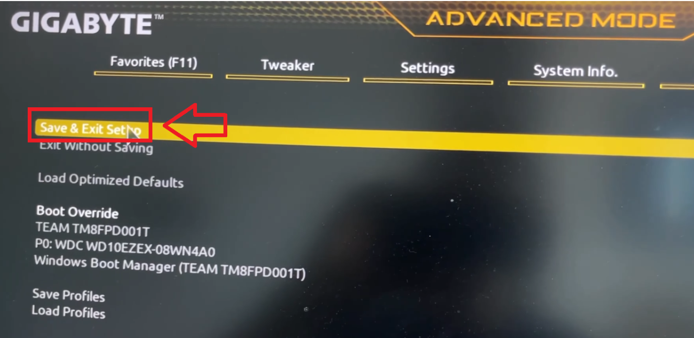 → Примените изменения, нажав “Save &Exit Setup” →