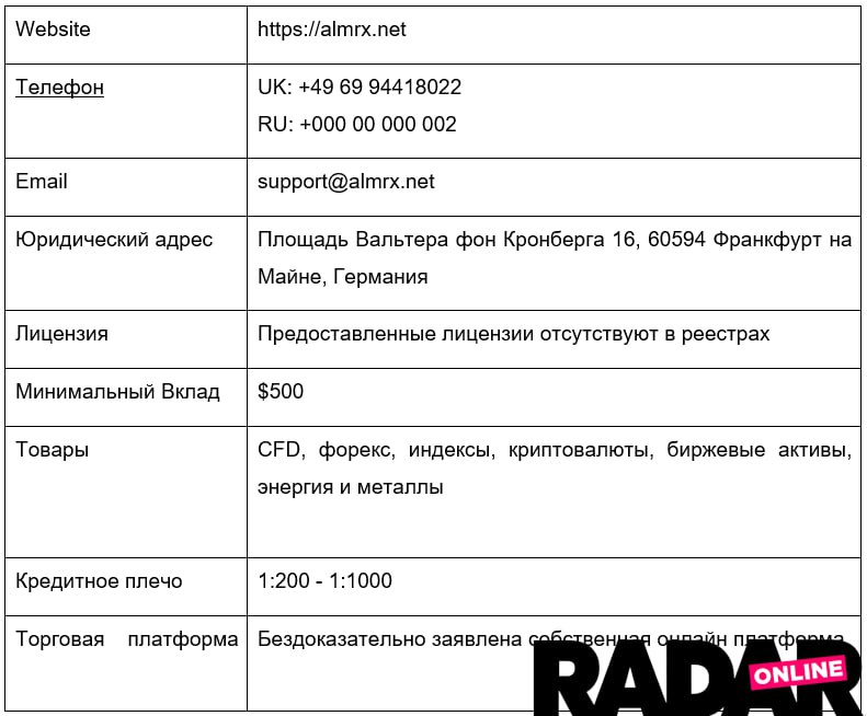 Несмотря на заявленный юридический адрес во Франкфурте, Almirex не имеет BaFin.