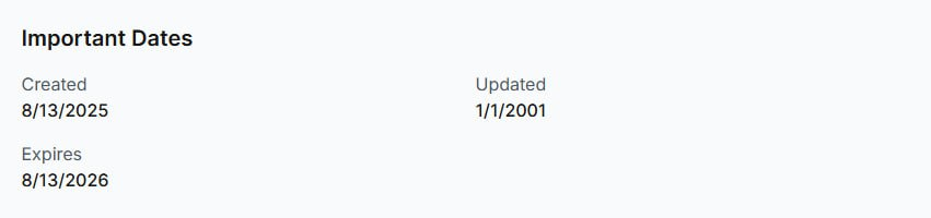 4. Домен almrx.net совсем новый и зарегистрирован 13 августа 2025, а отсутствие прозрачной и долгой истории существования типично для мошеннических проектов. WHOIS-информация подтверждает короткий срок существования сайта и анонимную регистрацию.