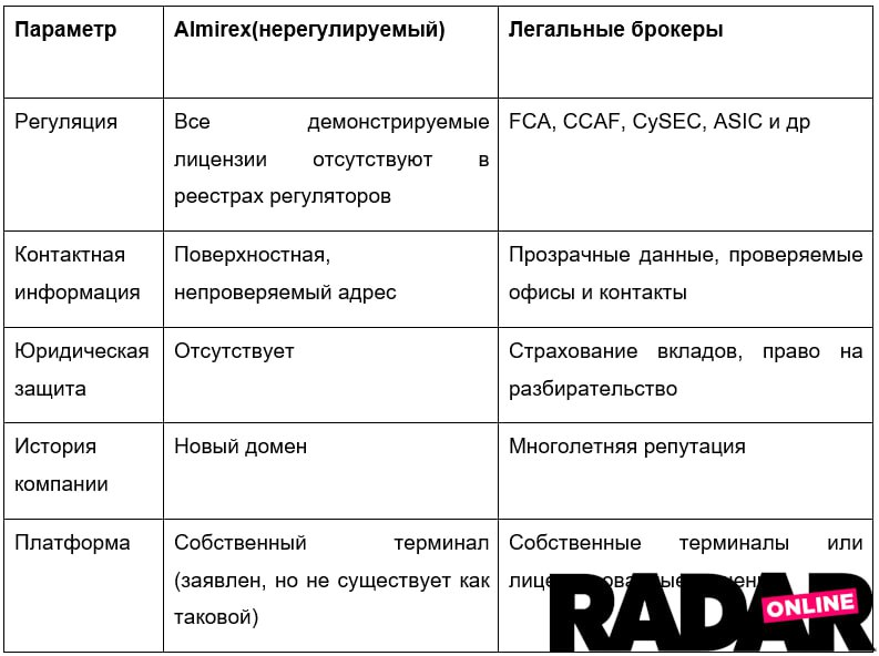 Также следует отметить, что решением Банка России Almirex признан компаний с выявленными признаками нелегальной деятельности на финансовом рынке (https://cbr.ru/inside/warning-list/detail/?id=37790).