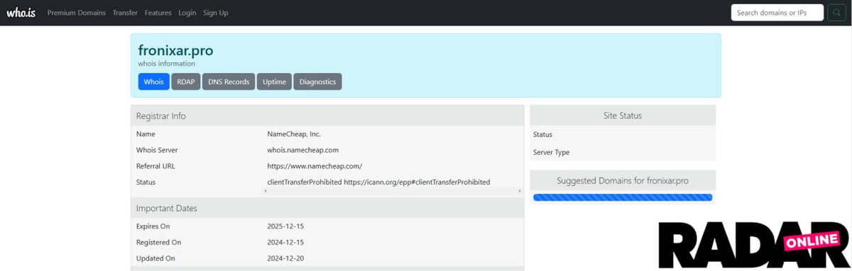 Но даже если на этом этапе вы ещё не насторожились, дальше будет хуже. Проверка домена показала, что сайт fronixar.pro был зарегистрирован всего несколько месяцев назад. То есть, этот «опытный брокер» с «многолетним опытом» на самом деле только что появился на свет. И это уже первый серьёзный звоночек.