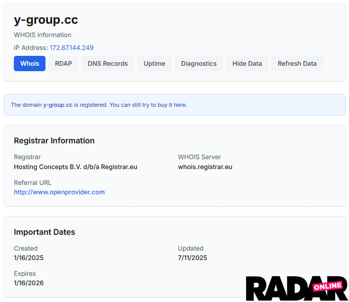 Домен y-group.cc был зарегистрирован 4 апреля 2024 года, и, по сути, является новым «лицом» платформы, которая может иметь за плечами уже множество жалоб на других доменах. Подобная стратегия широко распространена: