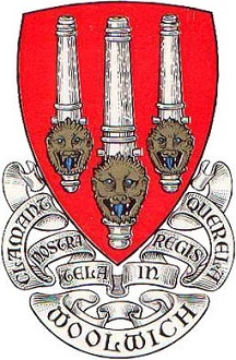 Первоначальная эмблема была скопирована с герба района Вулвич, где был основан клуб. Она включала три пушечных ствола, символизирующих военный арсенал, и лаконичный лозунг «Victoria Concordia Crescit» («Победа рождается в согласии»)