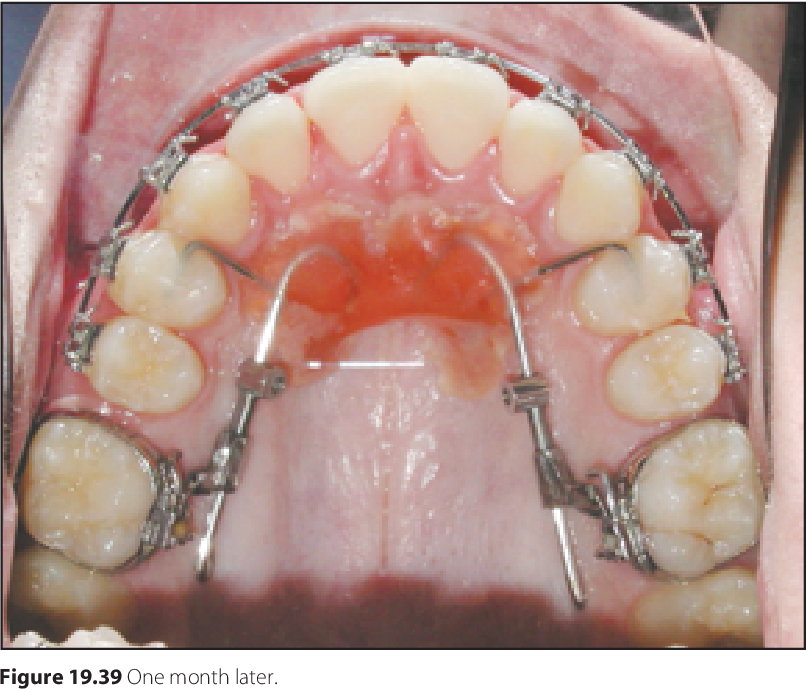 Мезіальний рух різців становив 1,9 мм з мезіальним нахилом 5° для щічних апаратів і 1,8 мм з меншим мезіальним нахилом 2,9° для піднебінних апаратів. Для премолярів мезіальне переміщення становило 2 мм для щічних апаратів і 1,3 мм для піднебінних апаратів.
