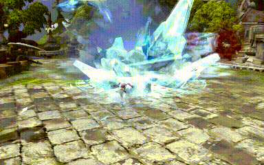 • На головы врагов падает гигантский ледяной меч. Атакованные враги получают большой урон и обморожение.