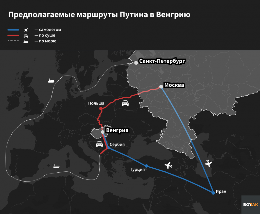 Наиболее вероятный путь, которым президент РФ направится на встречу с Трампом в венгерскую столицу, — воздушный. Однако и он несет определенные риски. Направляясь в Венгрию, Путину придется держаться как можно дальше от зоны действия украинских систем ПВО.