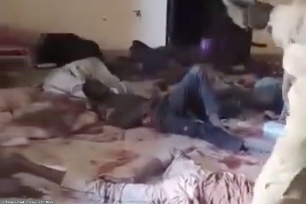 На одном из видео, опубликованном информационным агентством Al Jazeera, вооруженные боевики заходят в помещение медучреждения, весь пол которого завален телами мужчин в военной форме и гражданской одежде. Боевик стреляет из автомата в единственного выжившего мужчину в белом халате, другой снимает это на телефон.