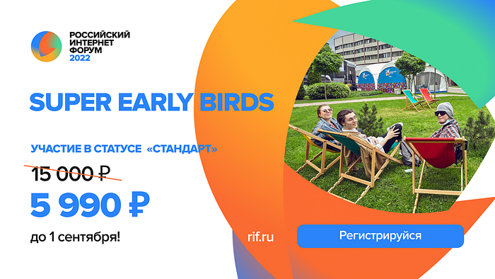 Стартуем с акцией SUPER EARLY BIRDS для самых нетерпеливых участников легендарного Интернет Форума. Локация знакомая, цены — низкие (до 1 сентября 2021).