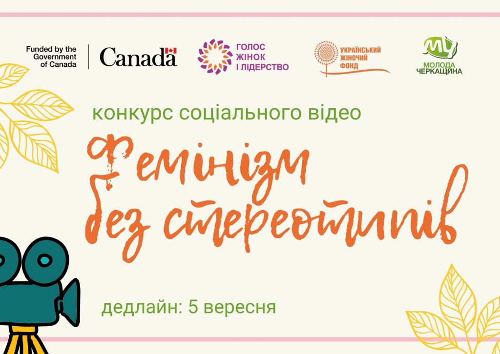 ГО «Молода Черкащина» оголошує конкурс соціальних відео «Фемінізм без стереотипів». Конкурс проводиться з метою руйнування стереотипів про фемінізм та активізацію жіночого лідерства.