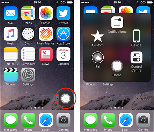 8. Проверить сенсор дисплея. Зайдите в «Настройки», далее наберите в строке поиска настроек «AssistiveTouch» и включите функцию наэкранной кнопки. Попробуйте поводить этой самой кнопкой по всему дисплею, она должна свободно проходить по всей площади экрана без прерываний. Если кнопка начинает залипать в определенном месте, то на устройстве есть проблемы с сенсорной частью;