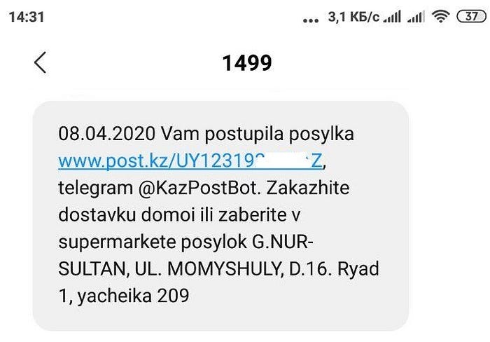 Либо можно по трек номеру отследить на сайте post.kz либо в Телеграм-боте https://t.me/KazPostBot