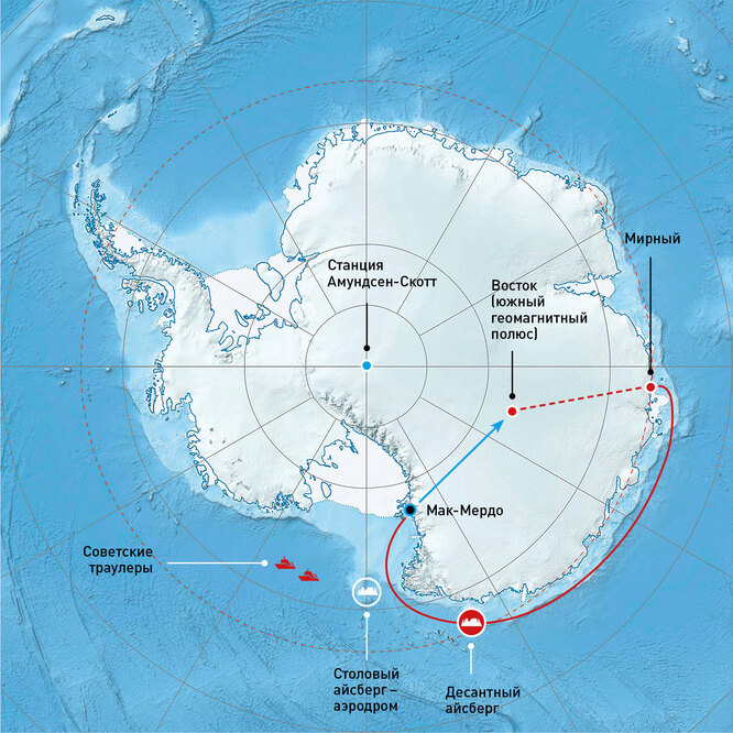 Технология прекрасная, но у нее есть один недостаток: как только включается эхолот, услышать его можно за многие километры, что быстро демаскирует подлодку. Поэтому для ядерных ракетоносцев начали разрабатываться новые системы ориентации на основе магнитного поля Земли, своеобразные сверхточные электронные компасы. Но для их работы нужны были уже новые данные – точные карты геомагнитных аномалий, сверхточные координаты магнитных полюсов Земли. Как известно, они не совпадают с географическими и, мало того, постоянно перемещаются. Тогда, в 1950-х, Северный геомагнитный полюс находился глубоко на территории Канады. Понятное дело, что в разгаре холодной вoйны доступ к нему советским специалистам был закрыт. Но на юге был еще один полюс.