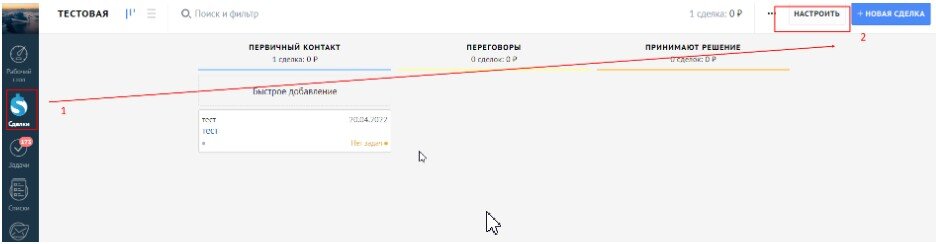 Итак установили вы виджет, получили тестовый период, дальше заходите в настройки самой воронки продаж