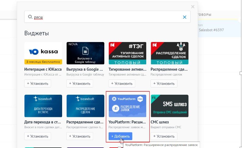 Собственно в меню amocrm «Настройки» находите подраздел «Интеграции» а там в поиске вбиваете «расширенное...» или «распределение» =)