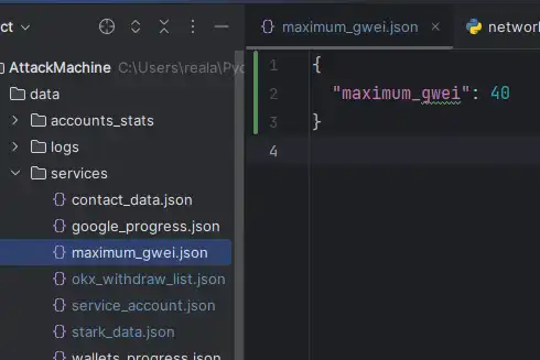 Для включения проверки газа необходимо указать GAS_CONTROL = True и установить максимальное значение газа (MAXIMUM_GWEI), выше которого софт работать не будет. SLEEP_TIME_GAS отвечает за время очередной проверки текущего газа, а CONTROL_TIMES_FOR_SLEEP нужен для предотвращения одновременного запуска собравшихся аккаунтов, после большого количества проверок. Если количество проверок превысит значение этой настройки, то софт сделает случайную задержку рассчитанную по формуле = SLEEP_TIME_STREAM * номер аккаунтаЗначение GAS_MULTIPLIER определяет коэффициент умножения стандартного Gas Limit. Если транзакции буду не проходить из-за ошибок маленького газа, то эта настройка спасет вас.Доступна динамическая смена настройки MAXIMUM_GWEI. Для этого, после запуска маршрута, зайдите в файл data/service/maximum_gwei.json и поменяйте настройку на необходимое значение. После очередного запуска, файл возьмет значение из settings.py