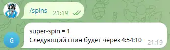 Бесполезный функционал - проверяем через телегу сколько и каких спинов доступно.