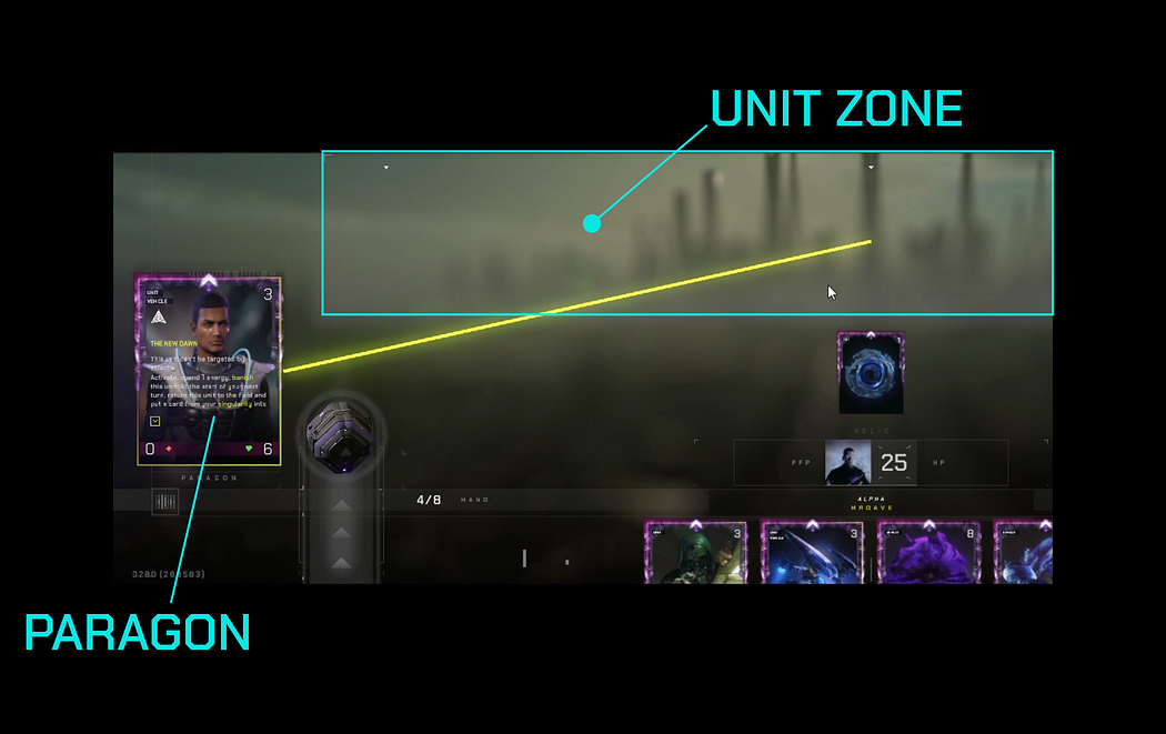 После того, как вы разыграете Парагона на поле боя (зона отрядов), изображение Парагона в зоне Парагона изменится, поскольку вы не сможете снова разыграть Парагона.