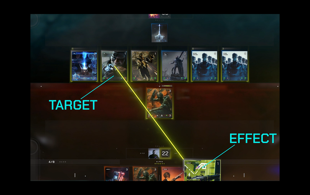 - Эффект, нацеленный на вражескую единицу или здоровье противника, необходимо перетащить на эту цель. (Пример: пусковая установка ПС-8).