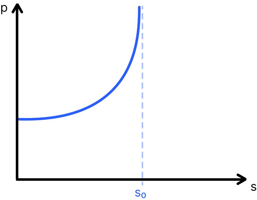 Из приведенных выше формул видно, что цена растет с ростом предложения, а при приближении предложения s к s 0 и резерв, и цена стремятся к бесконечности.
