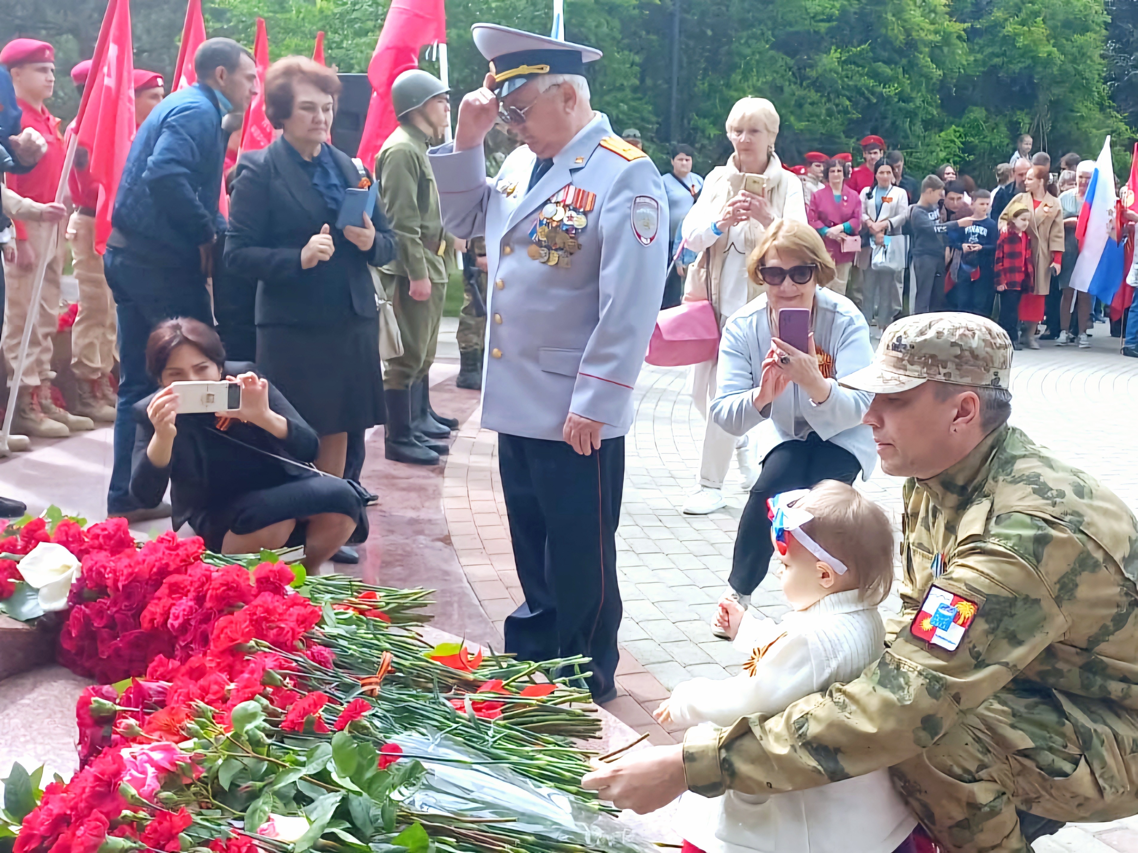 Новый памятник был открыт в 2020 году. С тех самых пор именно здесь проходят ключевые торжества, памятные мероприятия. Прошедший День Победы также отмечали в парке. Ветераны, местные власти, представители депутатского корпуса, силовых структур и правоохранительных органов, военные, члены патриотических клубов и местные жители возложили к мемориалу цветы в знак уважения и почтения к героическим землякам, почтили их память минутой молчания.