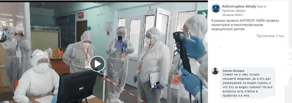 Между тем Минздрав в лице Шоранова даёт следующие разъяснения: «Запрет на проведение фото- и видеосъемки действует с апреля т. г. » (норма была озвучена Е. Биртановым в марте 2020 года).Что касается возможностей трансляции фактов грубости или незаконного обращения со стороны медицинских работников, то широко начинает пользоваться сервис Qoldau-24/7 куда можно обратиться и оставить жалобу. Туда можно прикреплять и фото и видео, доказывающее то или иное обращение. Это, кстати, значительно облегчает нам с выявлением тех или иных фактов и причинно-следственной связи».