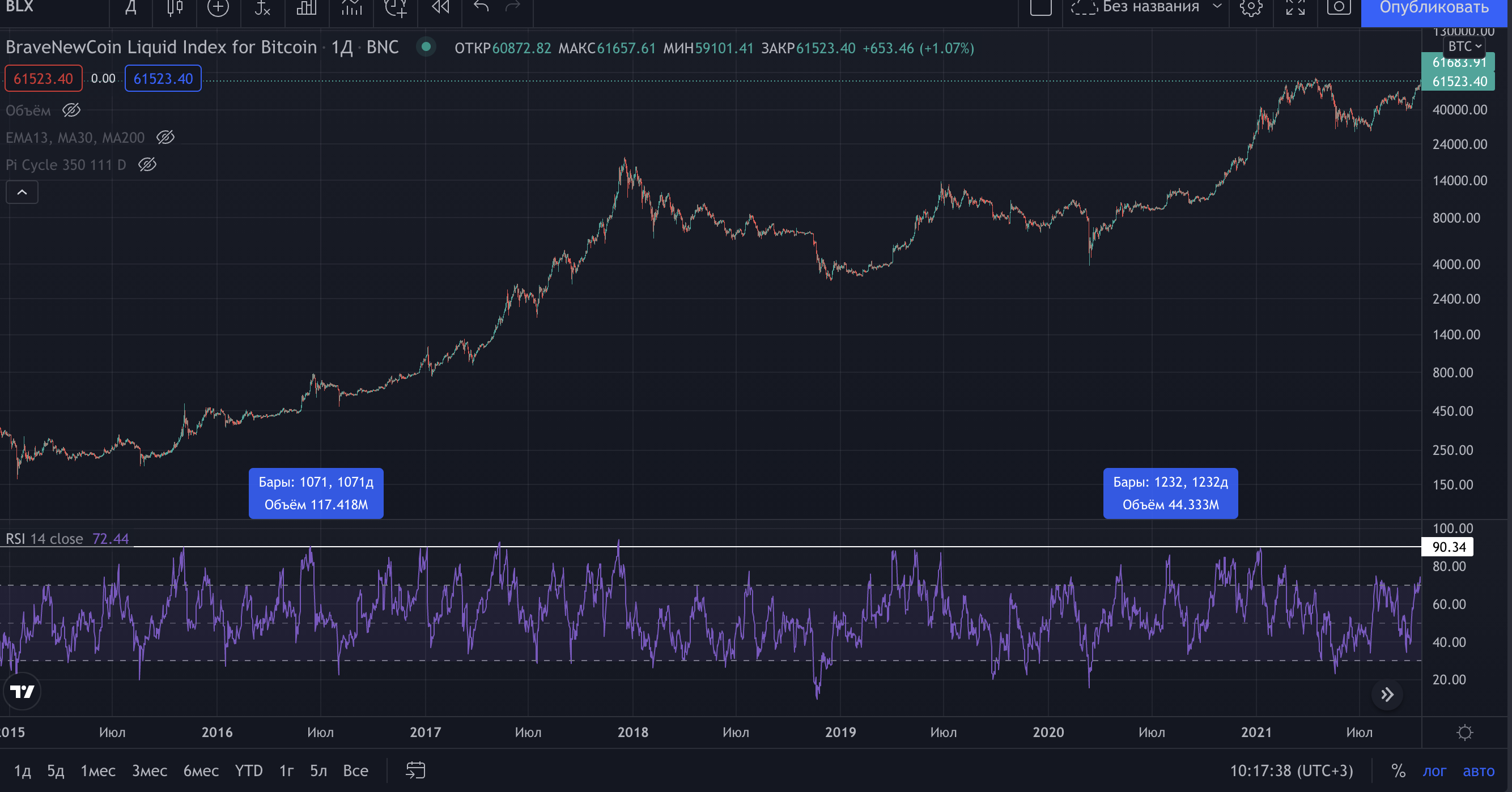 Прежде всего, отмечу: все, что я напишу сейчас - это психология. И буду вам показывать индикаторы на примерах пиков битка из недавнего цикла.