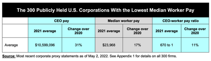 Руководители компаний вознаграждают себя щедрыми пакетами опционов на акции. Эти руководители также вознаграждают акционеров (в число которых входят и они сами) выкупом акций и дивидендами, при этом сокращая капитальные вложения. Это привело к тому, что руководители компаний зарабатывают в среднем в 670 раз больше, чем средний работник. Взгляните на приведенные ниже графики, чтобы получить более полное представление о перекосах в оплате труда в американских компаниях.