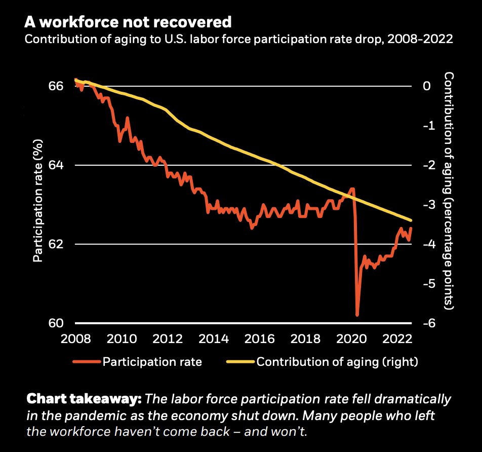 2. Старение населения. Сейчас больше рабочей силы старше 65 лет, и Ковид вывел их на пенсию раньше.
