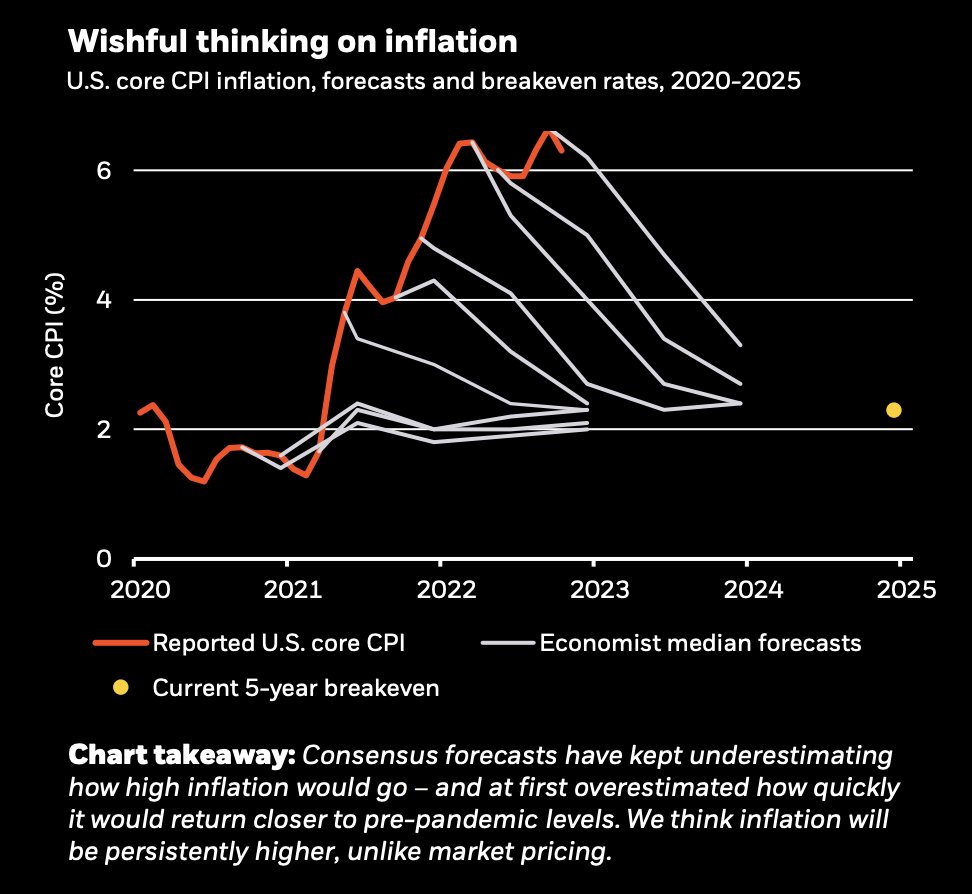 Чрезмерное повышение ставок прекратится, но инфляция (>2%) будет оставаться стабильно высокой даже при наступлении рецессии