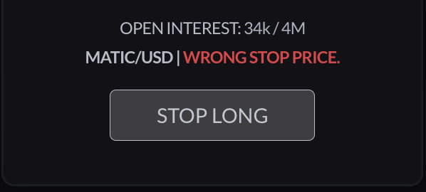 Если вы попытаетесь установить "Stop Long" по цене ниже рыночной, вы получите следующее сообщение: