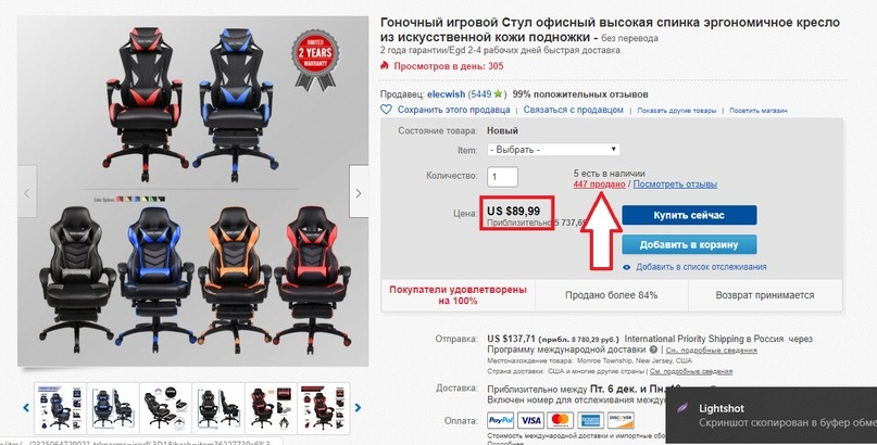 №5 Когда за кресло покупатель переводит деньги, ты покупаешь товар на Ебей.