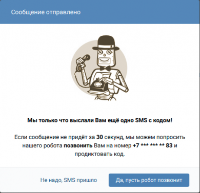 Но только вот, что с того? Что вот лично вы успетеете сделать за 2 минуты? Смс мы не перехватим, т.к. переадресация работает только на звонки. Но нам это и не интересно. Нажимаем «Выслать код повторно» и видим следующее окно: