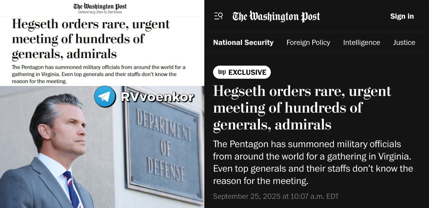НОВОЕ: На беспрецедентной встрече Хегсета примут участие высшие командиры, которые в настоящее время базируются в зонах конфликтов, и старшие военные руководители, дислоцированные по всей Европе, Ближнему Востоку и Азиатско-Тихоокеанскому региону