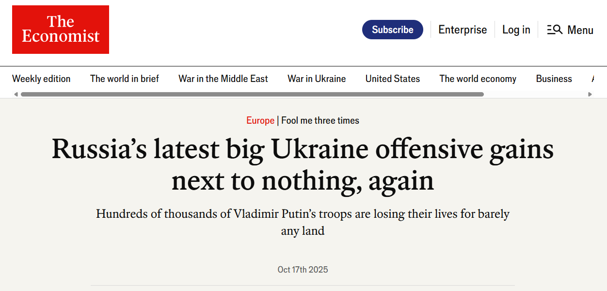 Между тем, вот как последний хит The Economist описывает неумолимые успехи России: