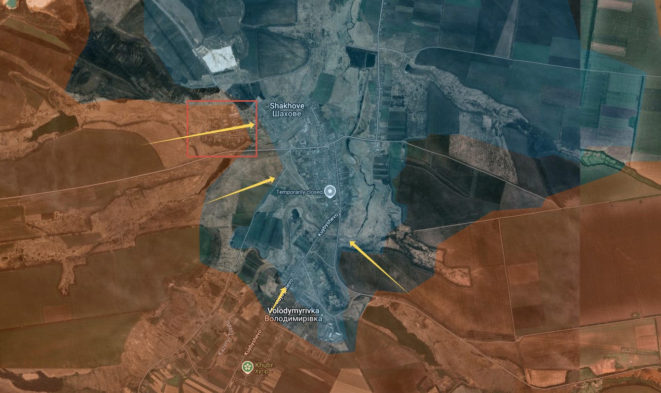 Чуть севернее оттуда, на восточном фланге Добропольского выступа, российские войска наконец-то начали штурм Шахово с северо-запада, впервые захватив первый участок населенного пункта: