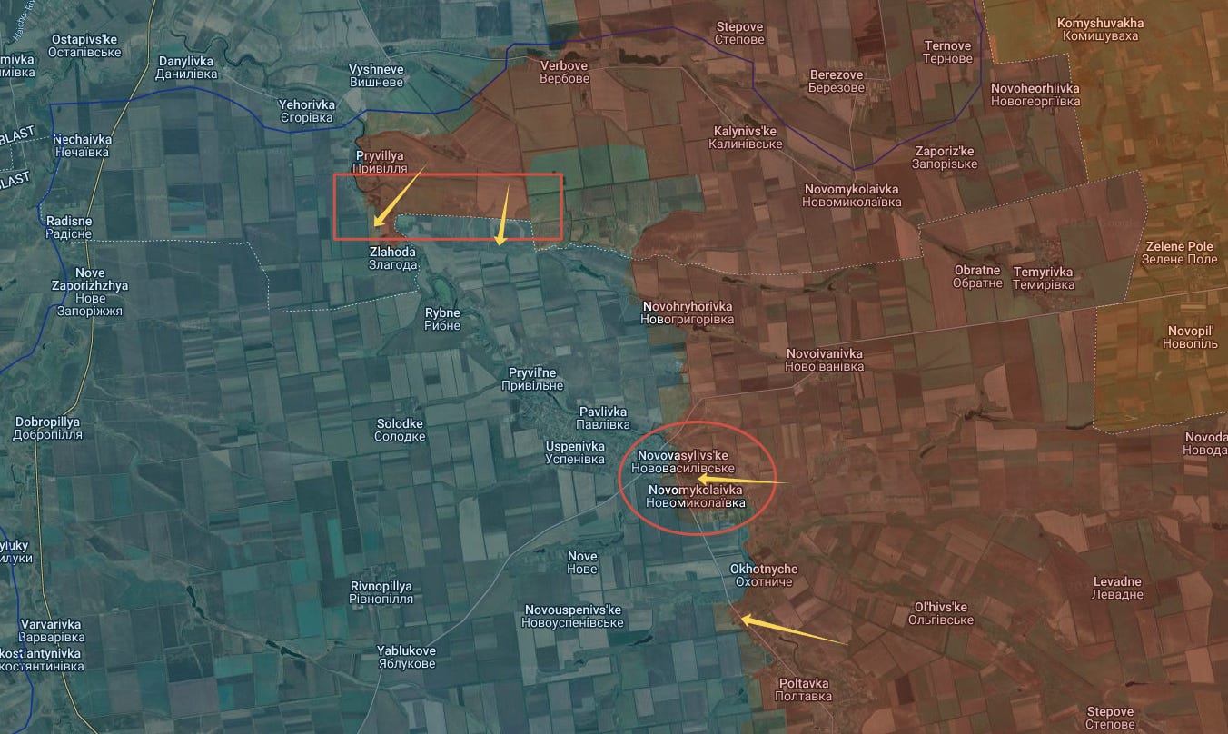 Наиболее заметная из них была в зоне реки Янчур по фронту Гуляйполя. Напомним, что российские войска только начали штурм цепи населенных пунктов. Теперь они каким-то образом переправились через реку и прорвались в Новониколаевку, захватив ее всю, а также часть соседнего Нововасильевского: