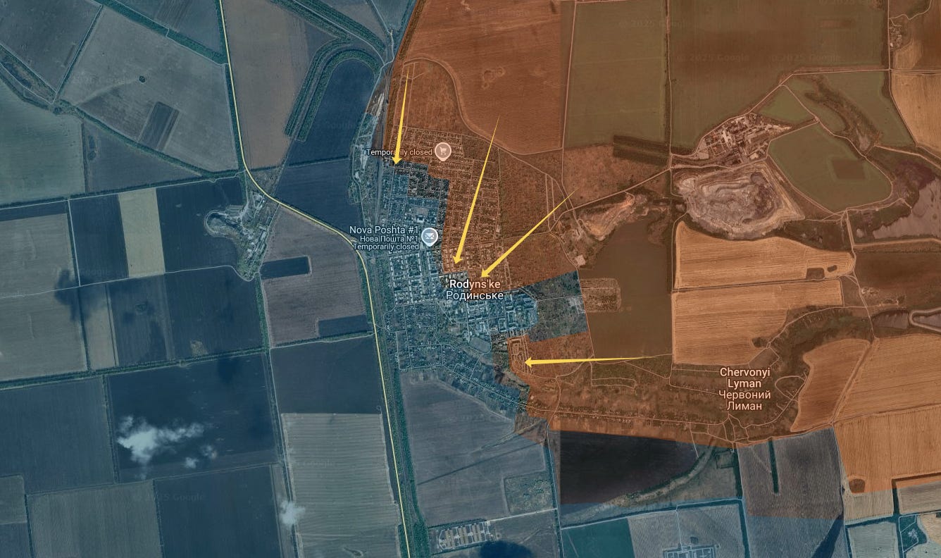 Что еще более важно, на данный момент российские войска захватили большой кусок Родынского с северо-восточного направления: