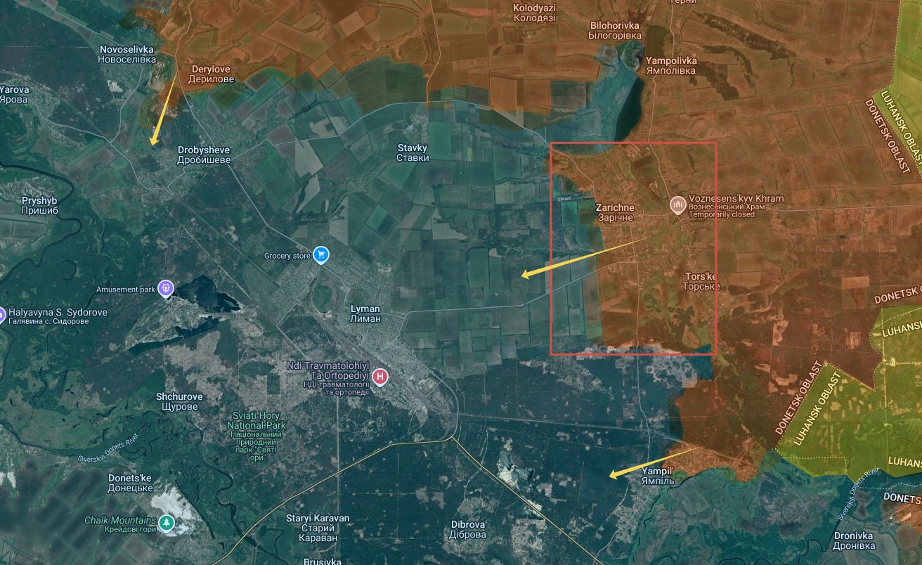 Теперь, когда Заречное также полностью захвачено, российские войска приближаются к Красному Лиману как никогда с трех направлений: