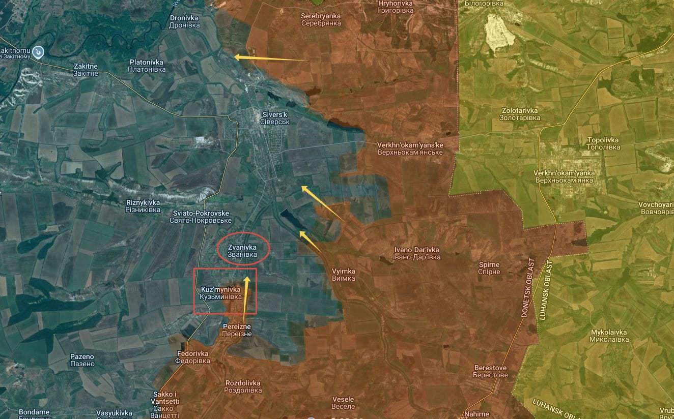 На Северском направлении наши войска продвигаются в сторону Звановки через недавно захваченное село Кузьминовка. 88-я бригада продвигается туда, но контроль над опорными пунктами противника в районе Кузьминовки под вопросом. Вооруженные силы России подтвердили контроль над Выемкой. По имеющимся данным, деревня была формально освобождена полгода назад, но только сейчас ее восстанавливают.