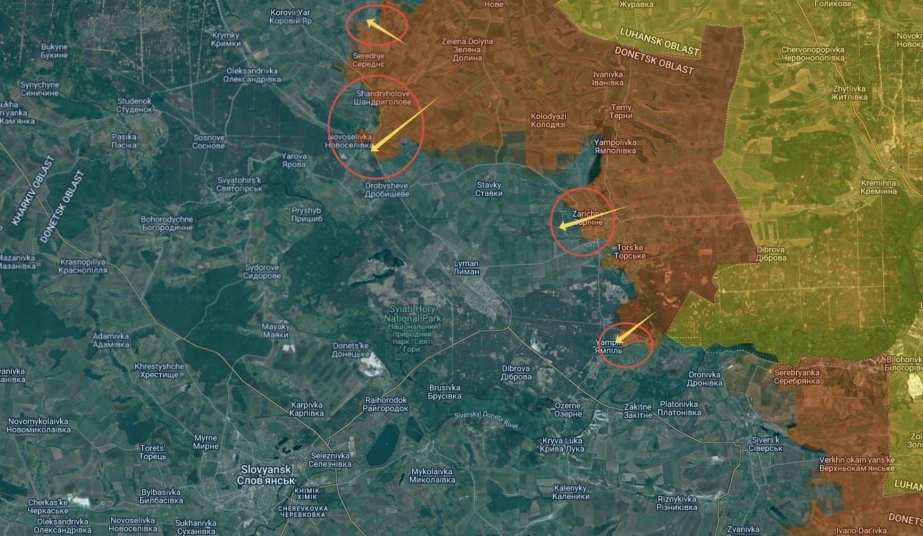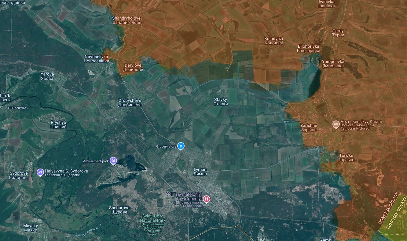 Выше Шандрыголов был полностью захвачен, и теперь следующие города Новоселовка и Дериловое прогрызаются российскими войсками, чтобы медленно охватить Красный Лиман с севера.