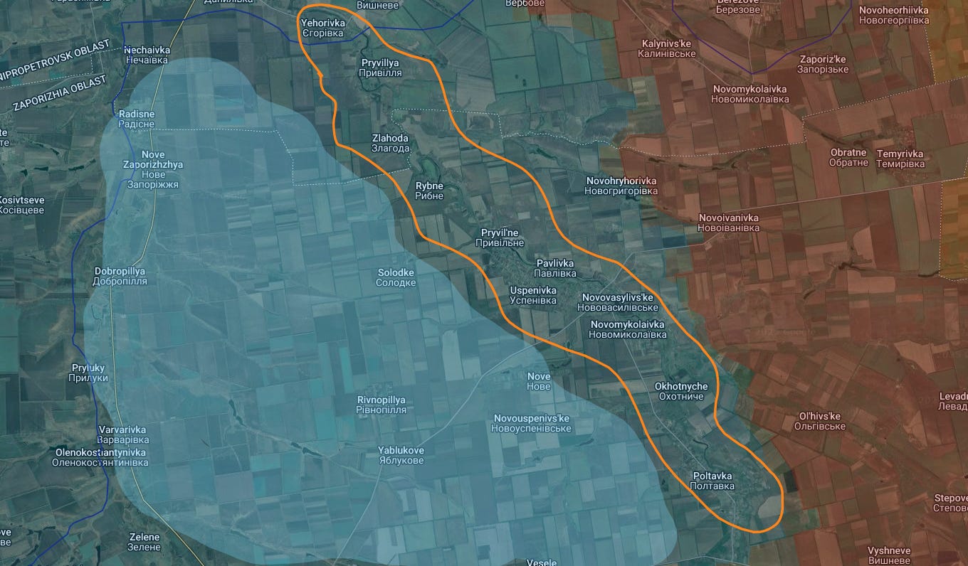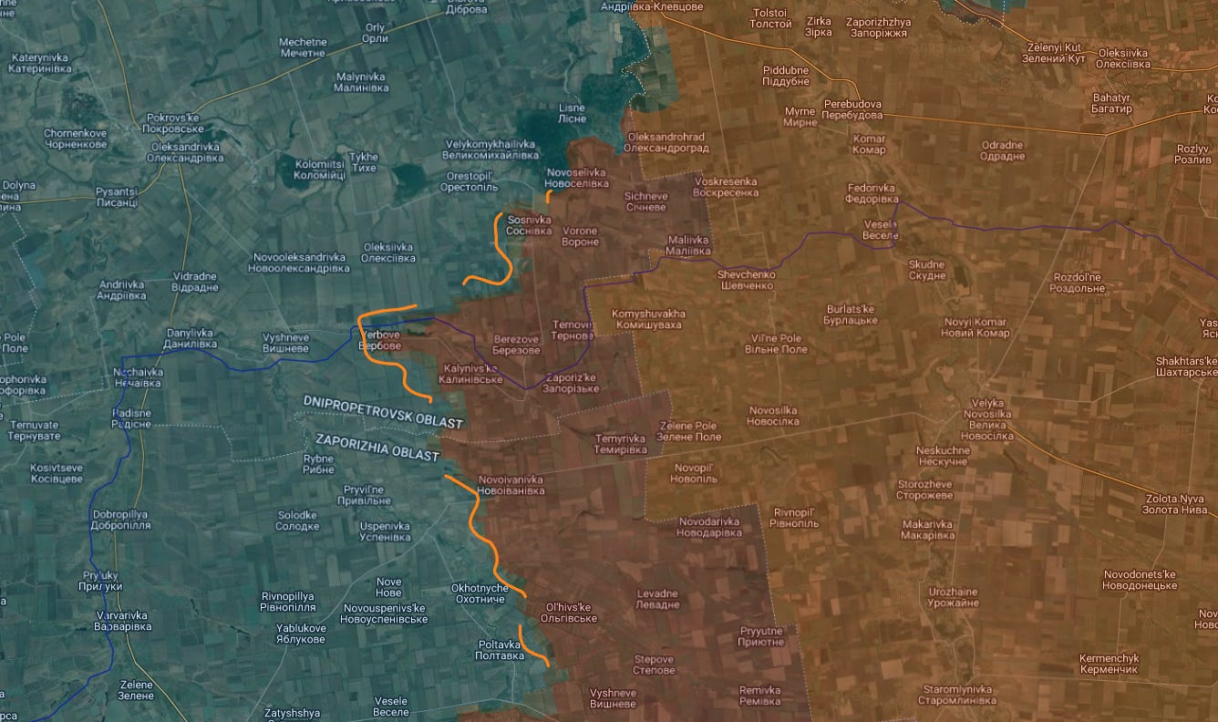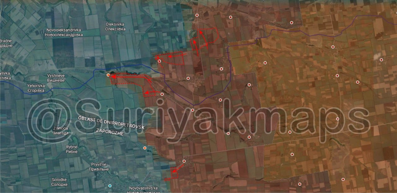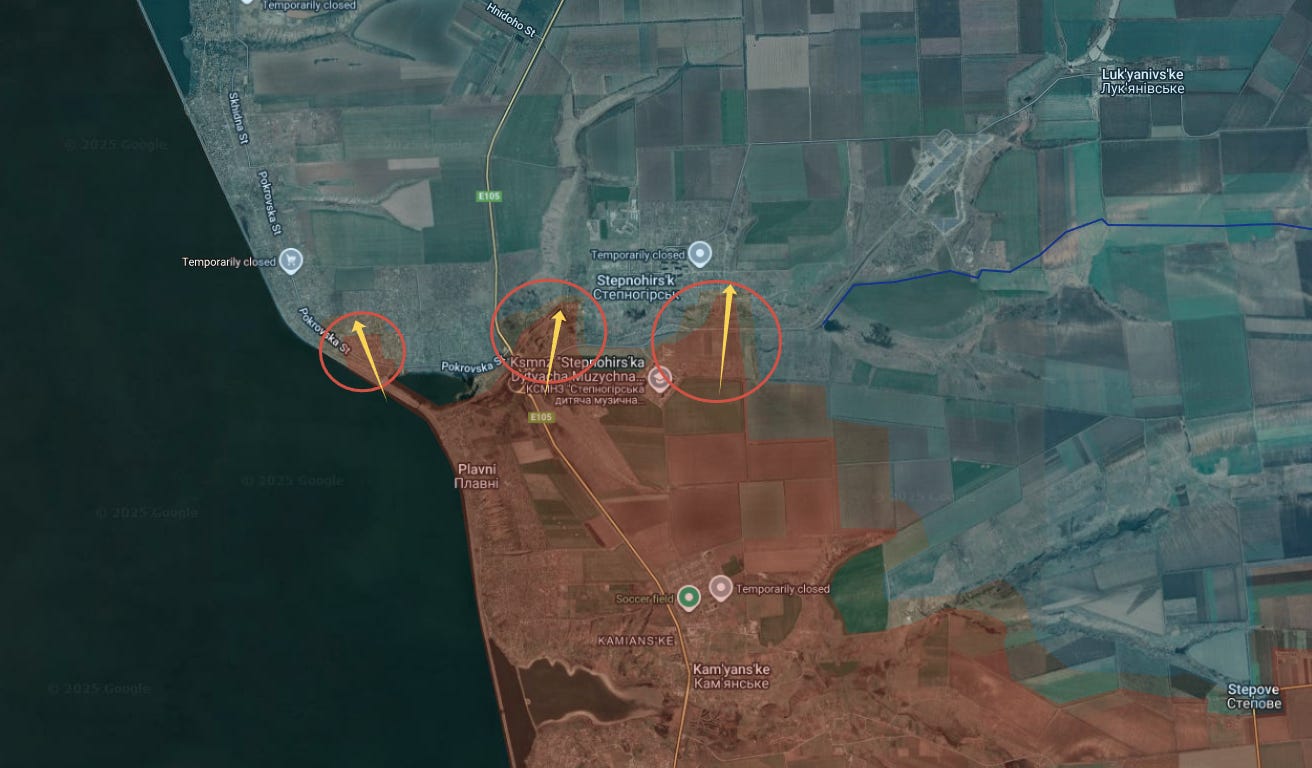В качестве краткого упоминания о том, что дальше на запад на Запорожской линии вдоль реки российские войска углубились как в Степногорск, так и в Плавни-Приморск: