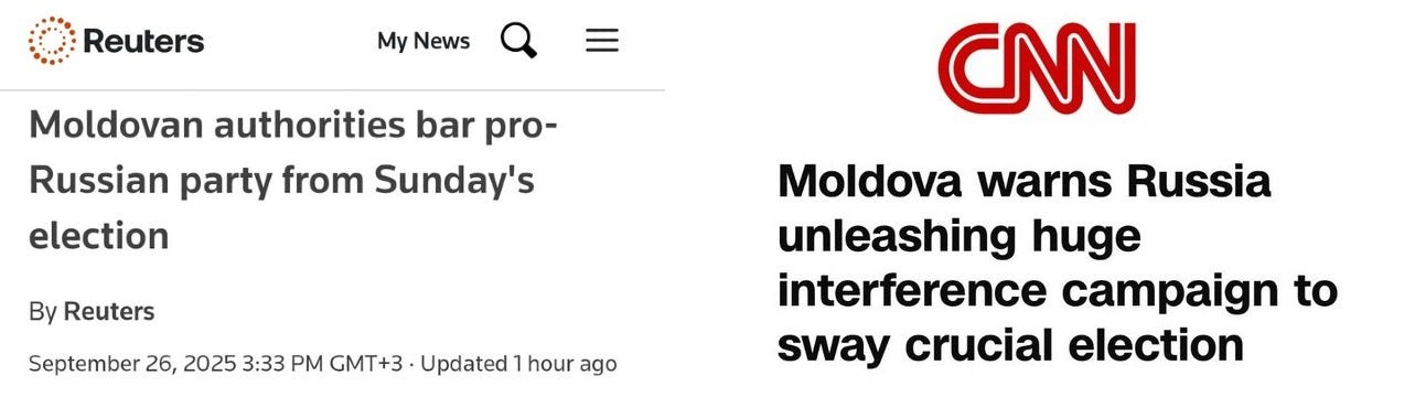 Уже накануне Молдова осуществила свои «европейские ценности» в рамках «Порядка, основанного на уловках», запретив две оппозиционные партии, признанные «прокремлевскими», всего за несколько часов до начала выборов.