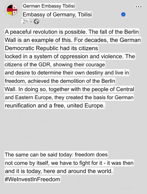 А также новые заявления Каи Каллас с обвинениями России в ведении «гибридной войны» против предстоящих выборов в Молдове. Как обычно, они обвиняют Россию именно в том, что они сами планируют сделать, чтобы замести следы. В конце концов, вы не увидите, чтобы российские политики принимали участие в предвыборных протестах в Грузии или Молдове, призывая к восстанию против правительства, как это было в случае с европейскими чиновниками. Напомним, посольство Германии в Грузии буквально призвало к революции в стране: