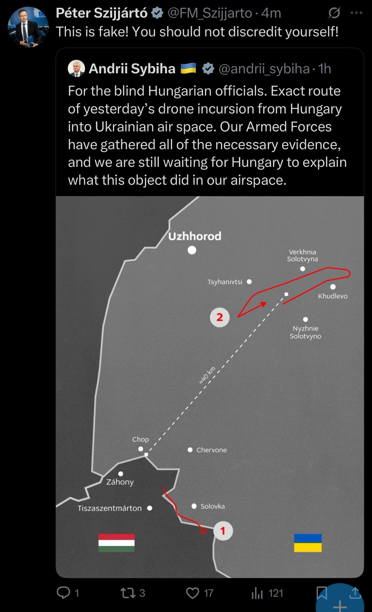 Как следствие всего вышесказанного, на фоне всех фальшивых «беспилотных» операций под чужим флагом, которые сейчас проносятся по Европе — явно постановочная кампания МИ-6 — Украина абсурдно обвинила Венгрию в отправке беспилотников в свою страну, что министр иностранных дел Венгрии тут же отверг: