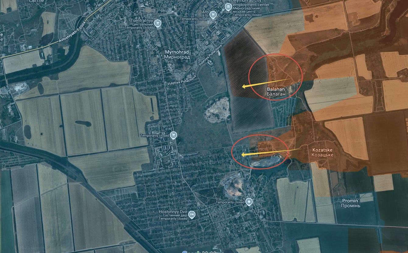 Еще одним наступлением по тому же направлению, но южнее, удалось по сути войти в окраины Мирнограда: