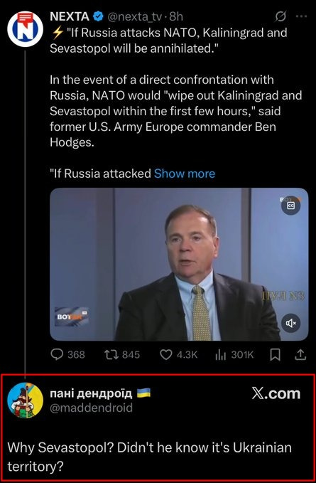 Что еще хуже, в новом интервью опальный «генерал» Бен Ходжес похвастался, что если Россия осмелится напасть на «мощное» НАТО, то и Калининград, и Севастополь будут «уничтожены» в первый же час: