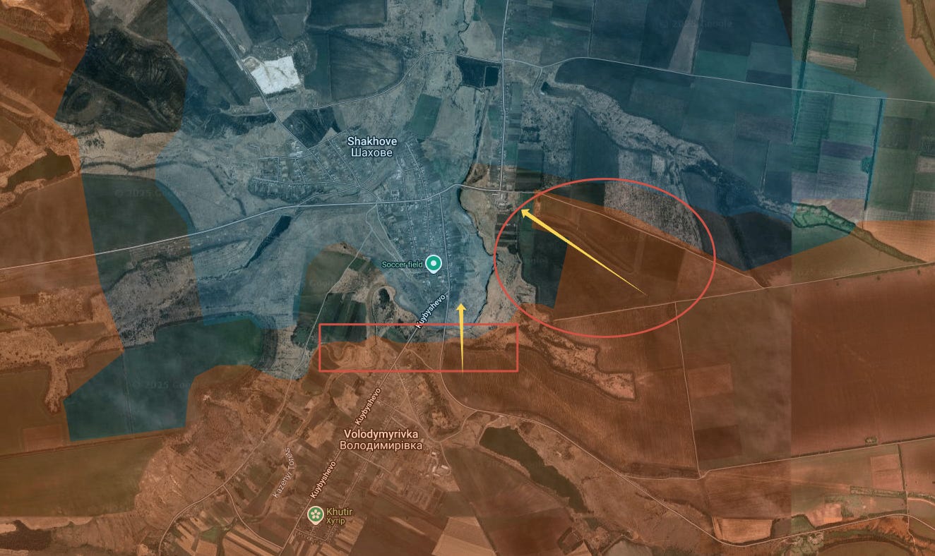Например, при штурме Шахово русские, по-видимому, захватили несколько полей и прижали фронт практически непосредственно к краю Шахово: