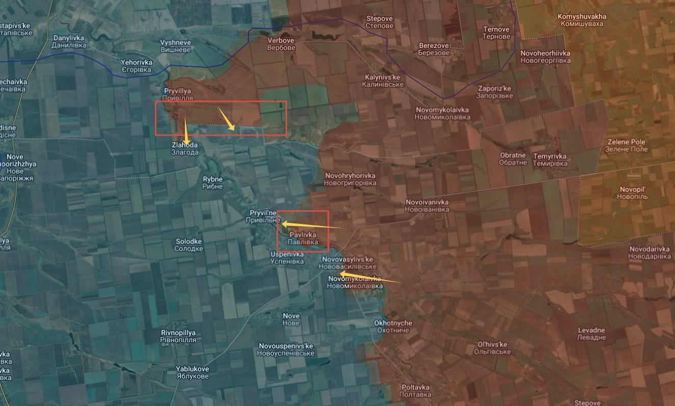 На цепи населенных пунктов реки Янчур на гуляйпольском направлении русская армия вновь расширила контроль как с северного, так и с восточного фланга, на этот раз захватив в центре населенный пункт Павловка: