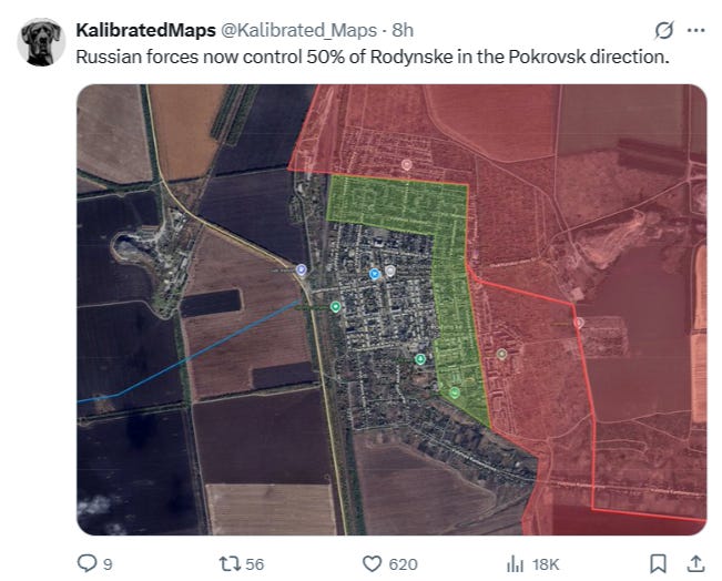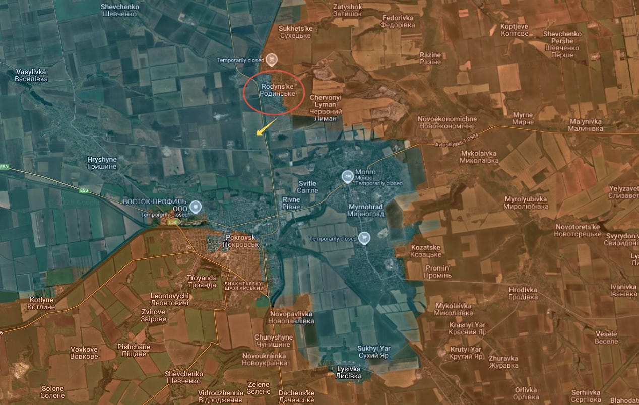 Родинское сейчас наполовину взято и вскоре может пасть, что немедленно поставит под угрозу Мирноград через путь снабжения: